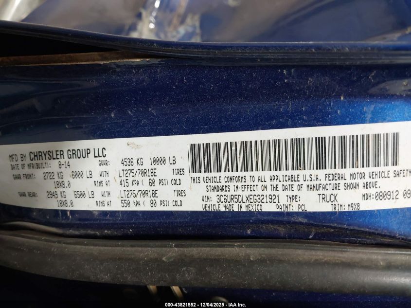 Колір СинійЦиліндри 6Привід Повний привідVIN 3C6UR5DLXEG321921Стан Заводиться та їде (перевірено)Ушкодження Ліва сторона