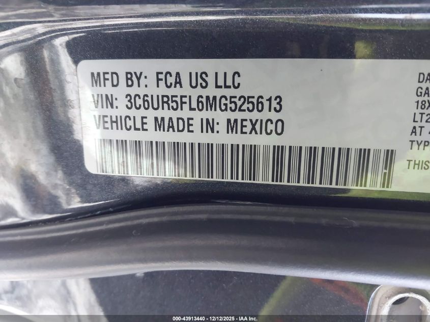 2021 RAM 2500 2021 року Дизель, 6.7, Повний привід, vin - 3C6UR5FL6MG525613 з США