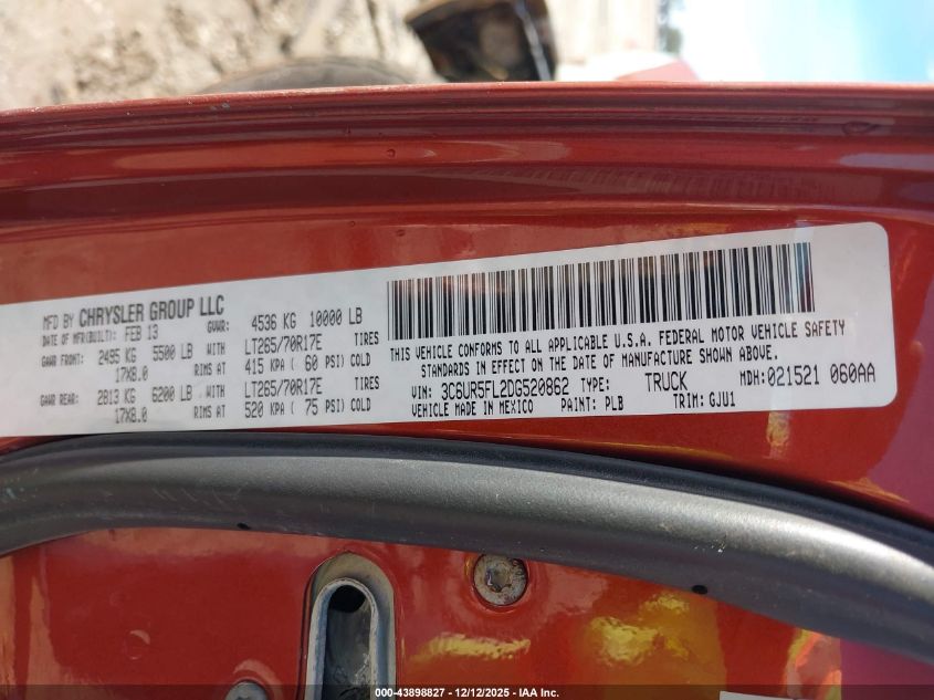 2013 RAM 2500 2013 року Дизель, 6.7, Повний привід, vin - 3C6UR5FL2DG520862 з США