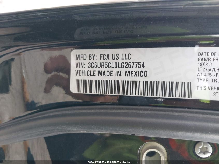 2020 RAM 2500 2020 року Дизель, 6.7, Повний привід, vin - 3C6UR5CL0LG267754 з США
