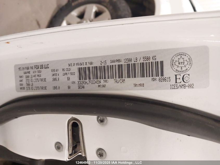 Колір БілийЦиліндри 6Привід Повний привідVIN 3C63R3HL7FG534594Стан СтаціонарноУшкодження ПередняДата аукціону 2025-12-10