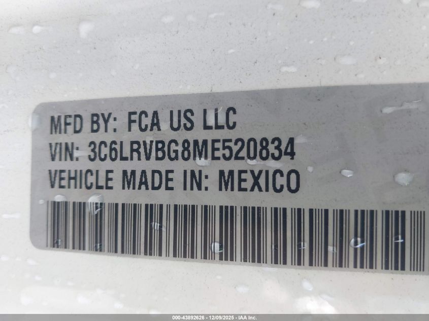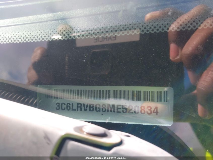 Колір БілийЦиліндри 6Привід Передній привідVIN 3C6LRVBG8ME520834Стан Заводиться та їде (перевірено)Ушкодження Дах
