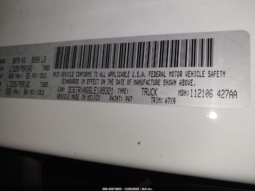 Колір БілийЦиліндри 6Привід Передній привідVIN 3C6TRVAG6LE109321Стан СтаціонарноУшкодження Передня або задня
