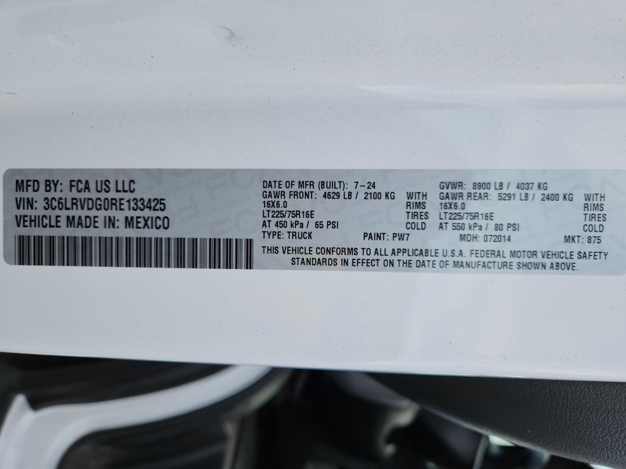Колір БілийЦиліндри 6VIN 3C6LRVDG0RE133425Стан НевідомоУшкодження Передня або задня