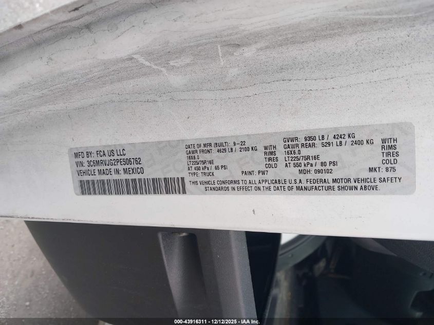 2023 RAM PROMASTER 3500 2023 року Бензин, 3.6, Передній привід, vin - 3C6MRVJG2PE506762 з США