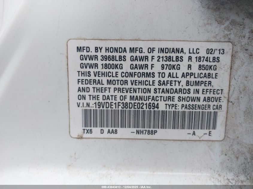 2013 ACURA ILX 2013 року Бензин, 2.0, Передний привод, vin - 19VDE1F38DE021694 из США