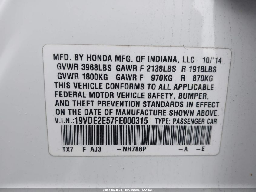 2015 ACURA ILX 2015 року Бензин, 2.4, Передний привод, vin - 19VDE2E57FE000315 из США