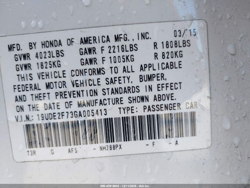 Цвет БелыйЦилиндры 4Привод Передний приводVIN 19UDE2F73GA005413Состояние Заводится и едет (проверено)Повреждения Задняя левая AutoRIA