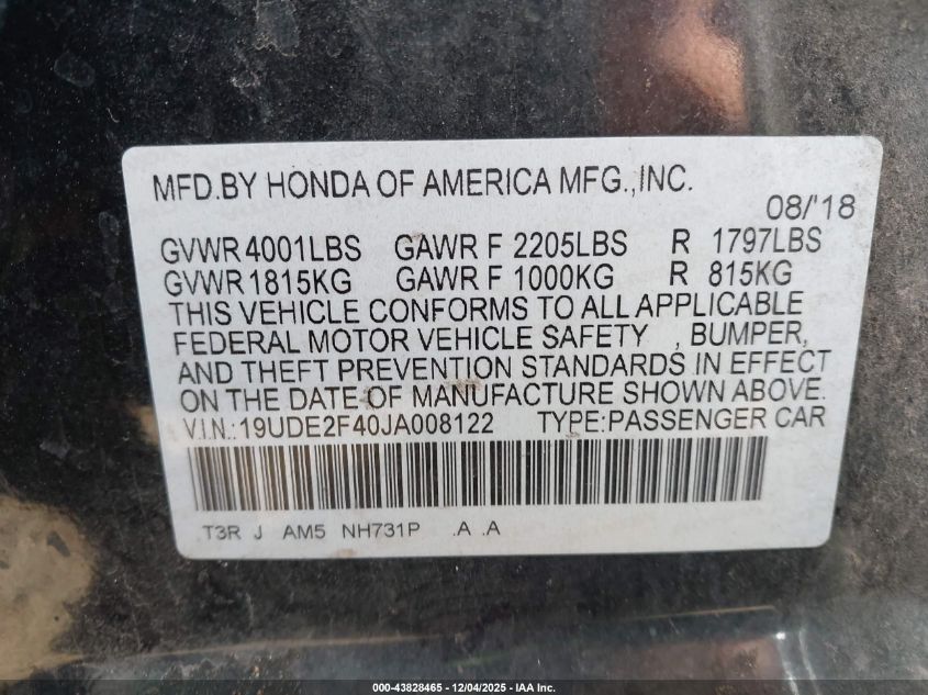2018 ACURA ILX 2018 року Бензин, 2.4, Передний привод, vin - 19UDE2F40JA008122 из США