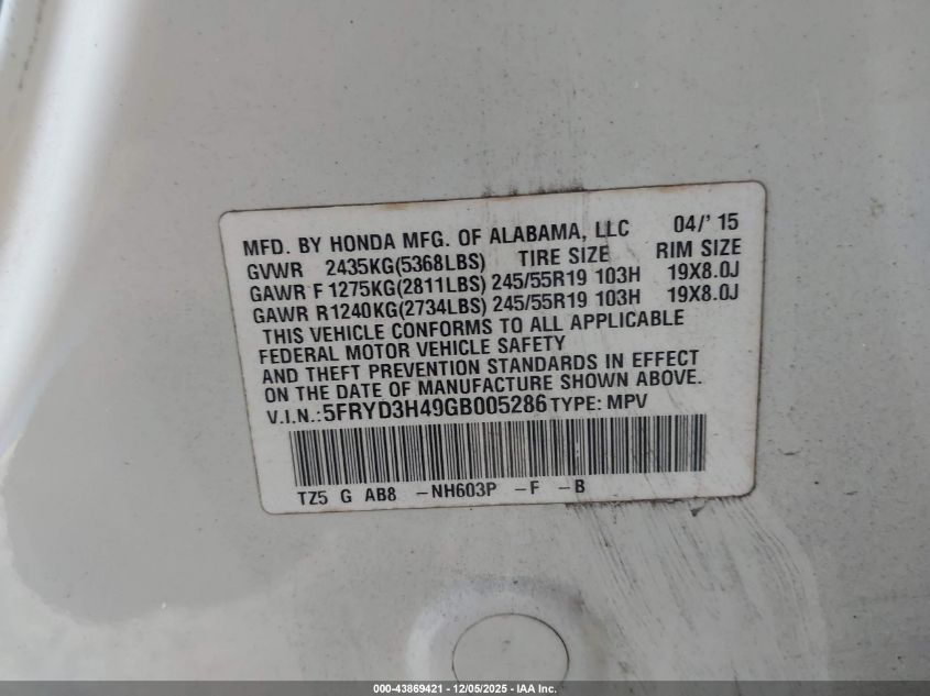 Цвет БелыйЦилиндры 6Привод Передний приводVIN 5FRYD3H49GB005286Состояние Заводится и едет (проверено)Повреждения Задняя правая AutoRIA