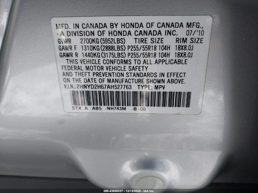 Цвет СеребряныйЦилиндры 6Привод Полный приводVIN 2HNYD2H67AH527763Состояние СтационарноПовреждения Передняя или задняя AutoRIA