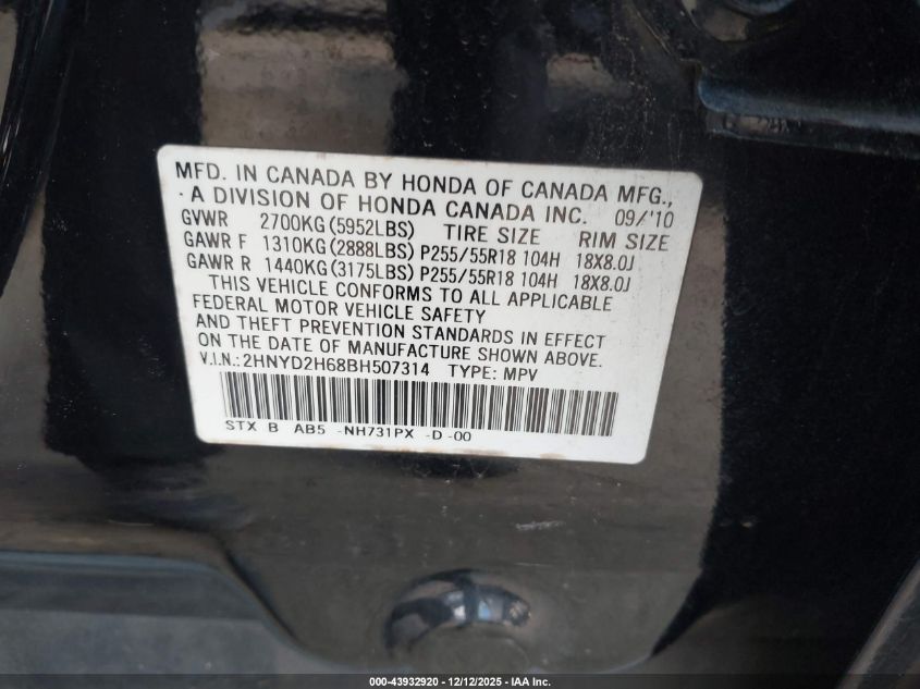 Цвет ЧерныйЦилиндры 6Привод Полный приводVIN 2HNYD2H68BH507314Состояние СтационарноПовреждения Передняя или задняя AutoRIA