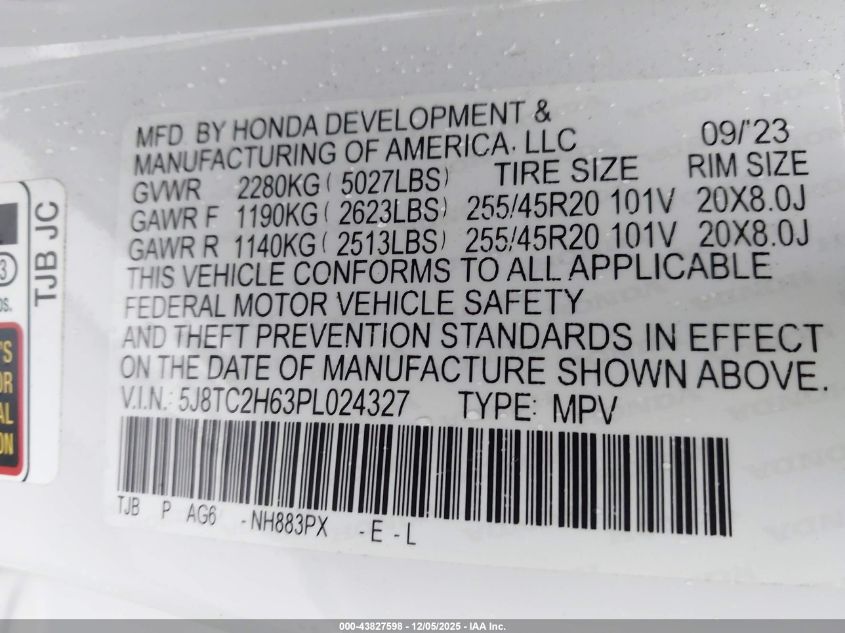 2023 ACURA RDX 2023 року Бензин, 2.0, Полный привод, vin - 5J8TC2H63PL024327 из США