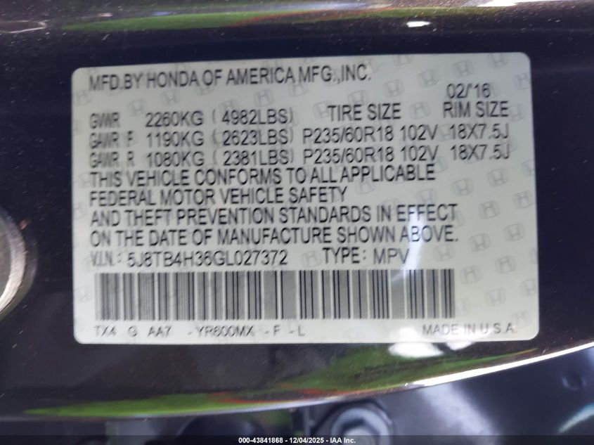 2016 ACURA RDX 2016 року Бензин, 3.5, Полный привод, vin - 5J8TB4H36GL027372 из США