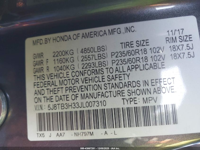 2018 ACURA RDX 2018 року Бензин, 3.5, Передний привод, vin - 5J8TB3H33JL007310 из США