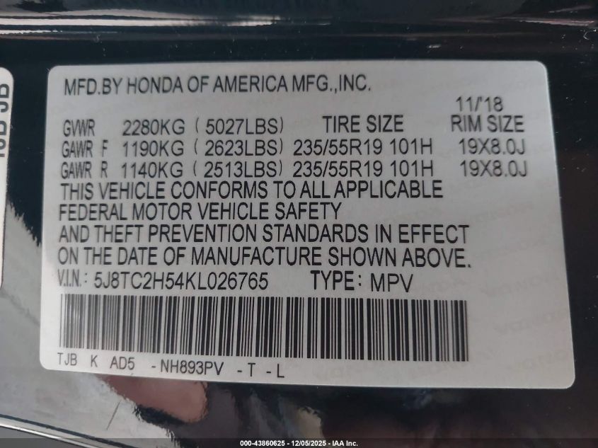2019 ACURA RDX 2019 року Бензин, 2.0, Полный привод, vin - 5J8TC2H54KL026765 из США