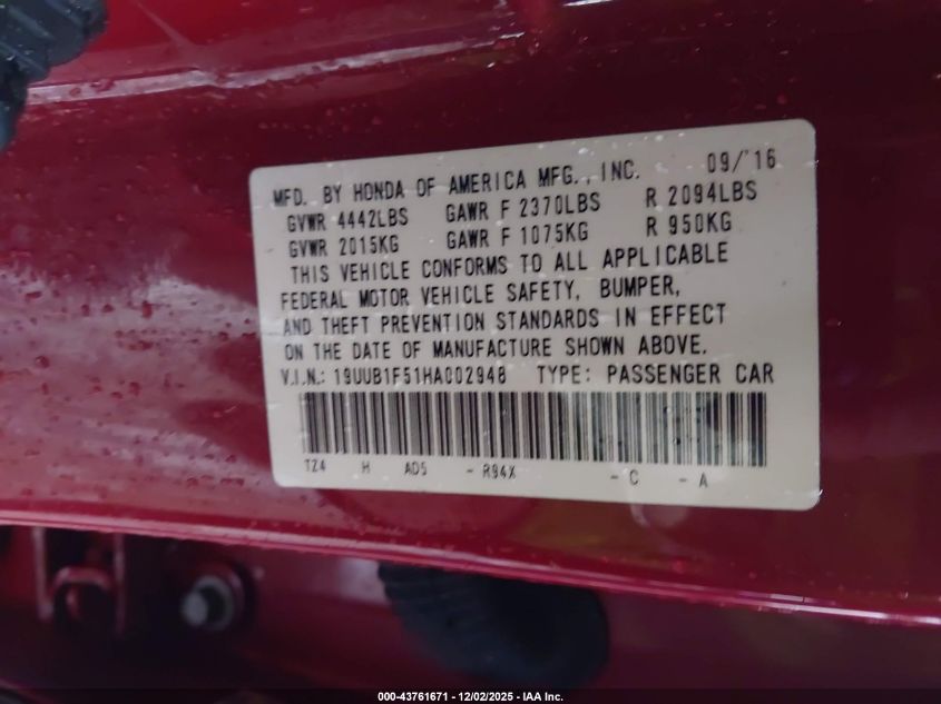 2017 ACURA TLX 2017 року Бензин, 2.4, Передний привод, vin - 19UUB1F51HA002948 из США