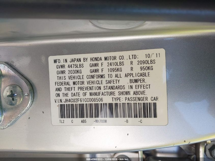 Цвет СеребряныйЦилиндры 4Привод Передний приводVIN JH4CU2F61CC008506Состояние Заводится и едет (проверено)Повреждения Задняя правая AutoRIA
