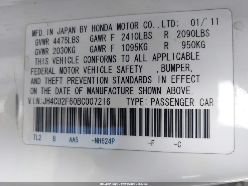 2011 ACURA TSX 2011 року Бензин, 2.4, Передний привод, vin - JH4CU2F60BC007216 из США