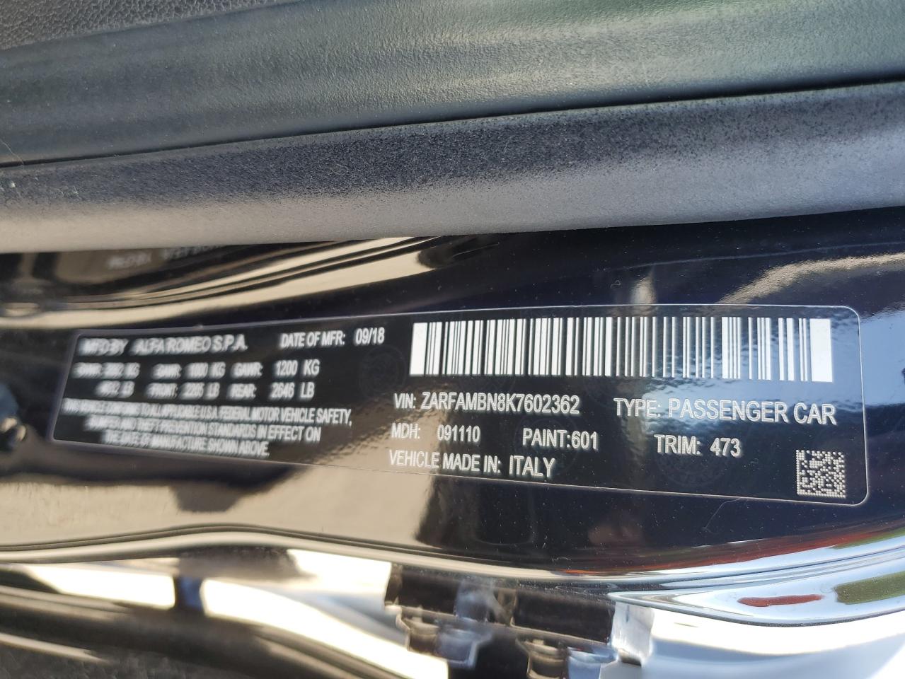 2019 ALFA ROMEO GIULIA 2019 року Бензин, 2.0, Задний привод, vin - ZARFAMBN8K7602362 из США