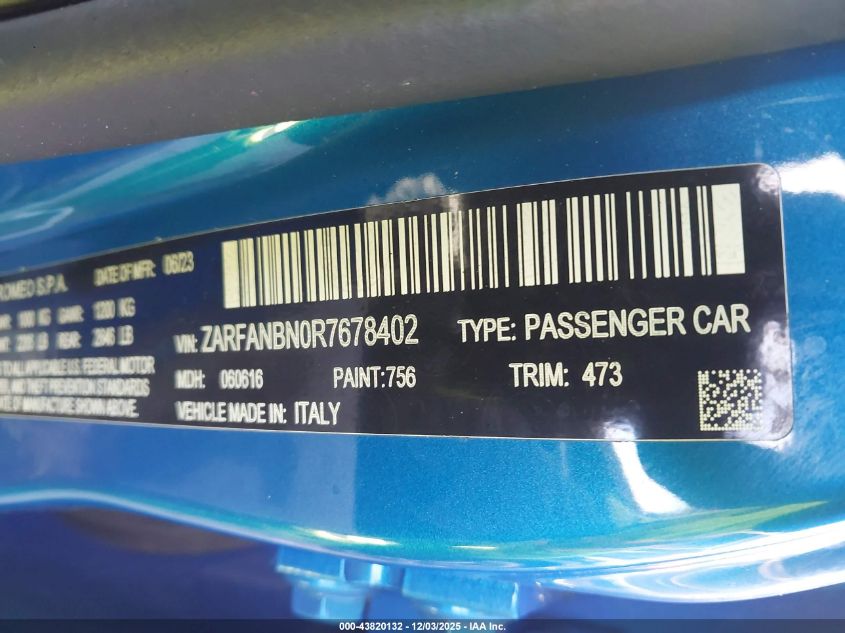 2024 ALFA ROMEO GIULIA 2024 року Бензин, 2.0, Полный привод, vin - ZARFANBN0R7678402 из США