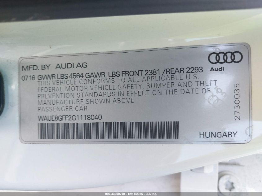 2016 AUDI A3 2016 року Бензин, 2.0, Полный привод, vin - WAUE8GFF2G1118040 из США