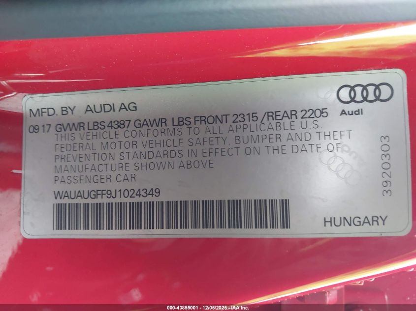 2018 AUDI A3 2018 року Бензин, 2.0, Передний привод, vin - WAUAUGFF9J1024349 из США