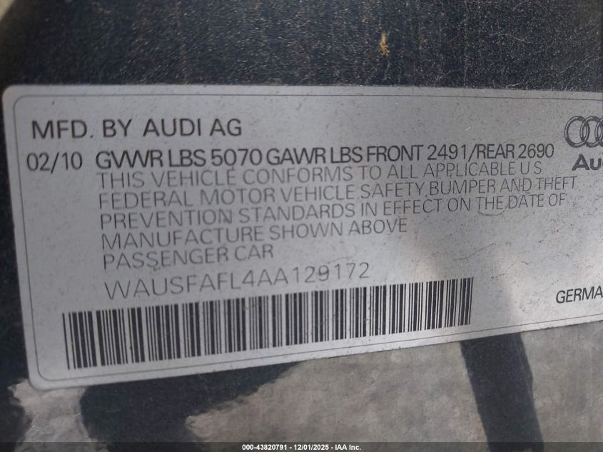 2010 AUDI A4 2010 року Бензин, 2.0, Полный привод, vin - WAUSFAFL4AA129172 из США