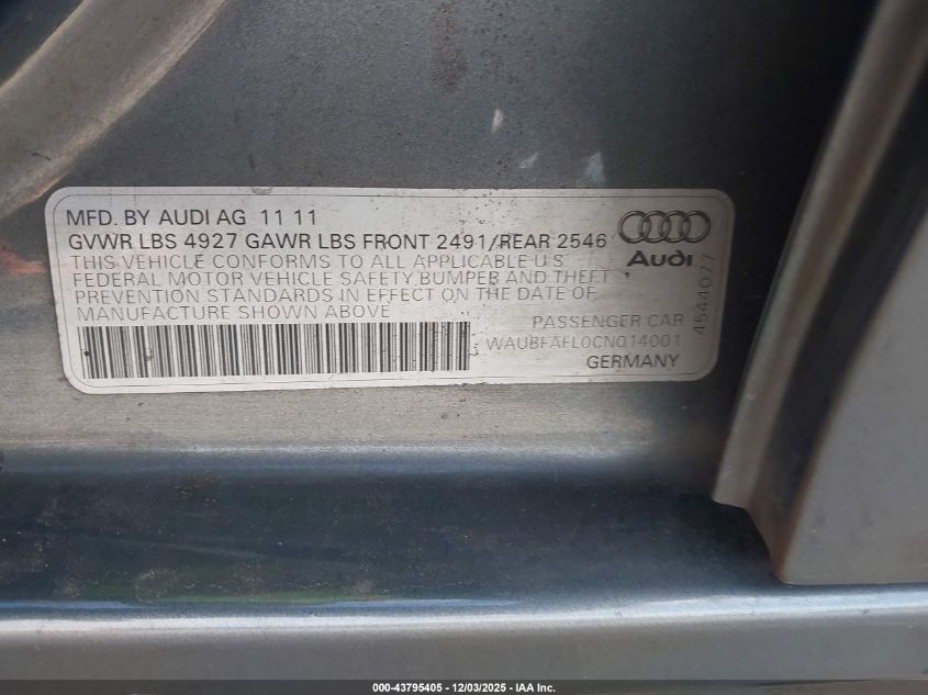 2012 AUDI A4 2012 року Бензин, 2.0, Полный привод, vin - WAUBFAFL0CN014001 из США