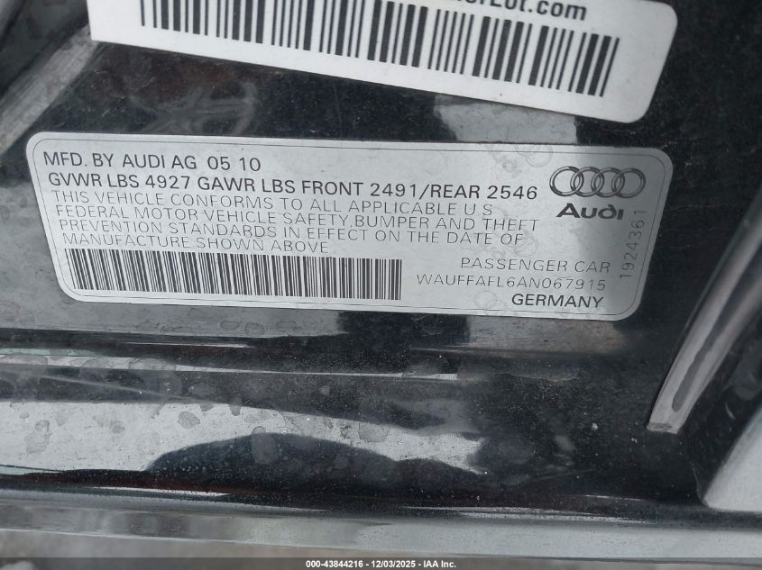 2010 AUDI A4 2010 року Бензин, 2.0, Полный привод, vin - WAUFFAFL6AN067915 из США