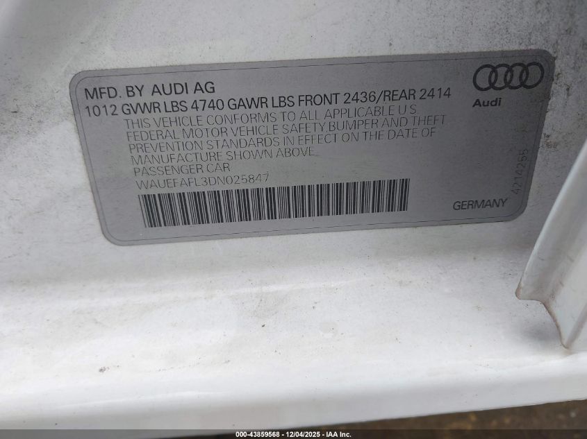 2013 AUDI A4 2013 року Бензин, 2.0, Передний привод, vin - WAUEFAFL3DN025847 из США