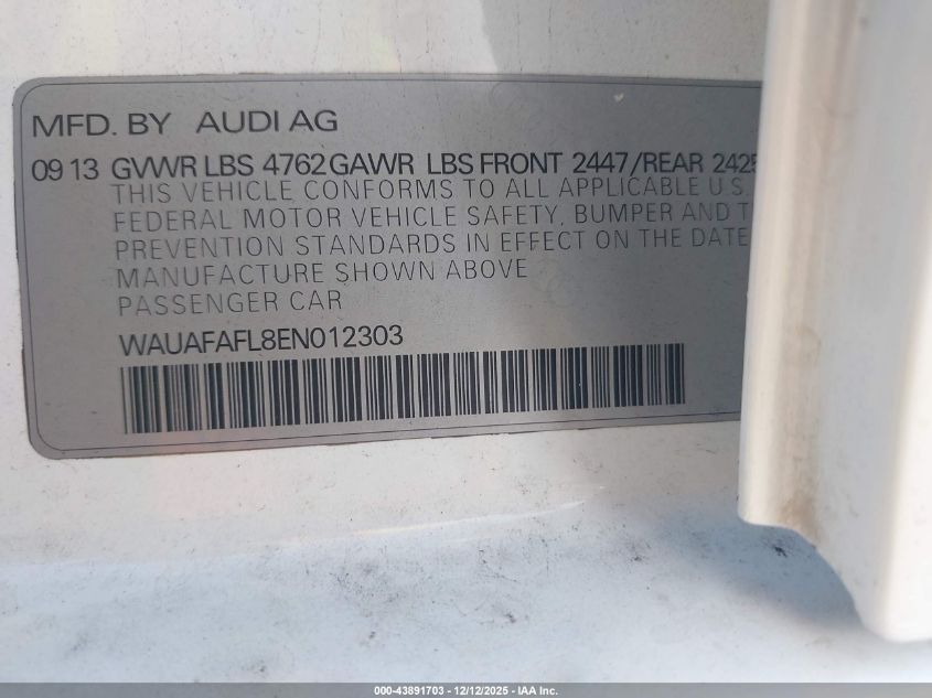 2014 AUDI A4 2014 року Бензин, 2.0, Передний привод, vin - WAUAFAFL8EN012303 из США