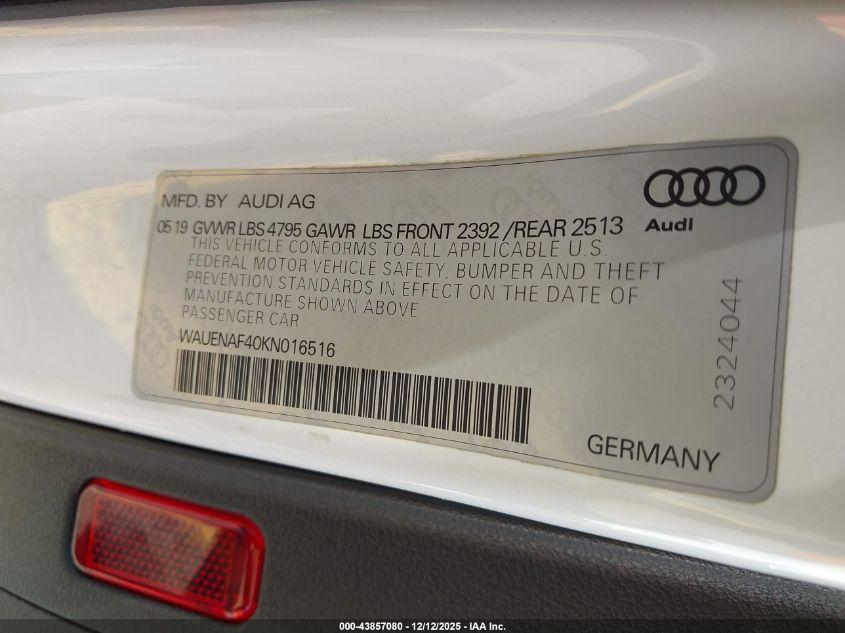 2019 AUDI A4 2019 року Бензин, 2.0, Полный привод, vin - WAUENAF40KN016516 из США