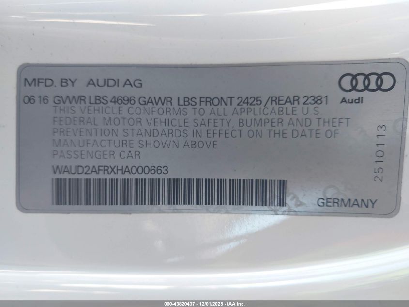 2017 AUDI A5 2017 року Бензин, 2.0, Полный привод, vin - WAUD2AFRXHA000663 из США