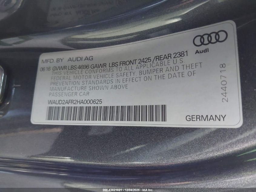 2017 AUDI A5 2017 року Бензин, 2.0, Полный привод, vin - WAUD2AFR2HA000625 из США