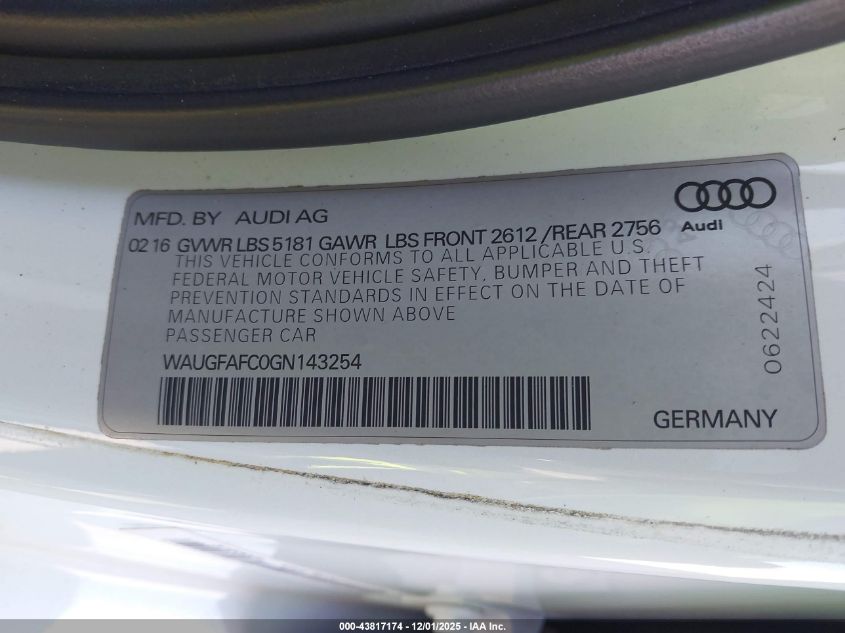 2016 AUDI A6 2016 року Бензин, 2.0, Полный привод, vin - WAUGFAFC0GN143254 из США