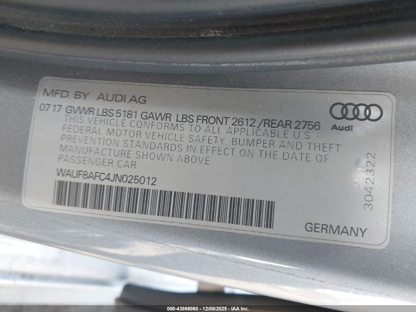 Цвет СеребряныйЦилиндры 4Привод Полный приводVIN WAUF8AFC4JN025012Состояние СтационарноПовреждения Передняя или задняя AutoRIA