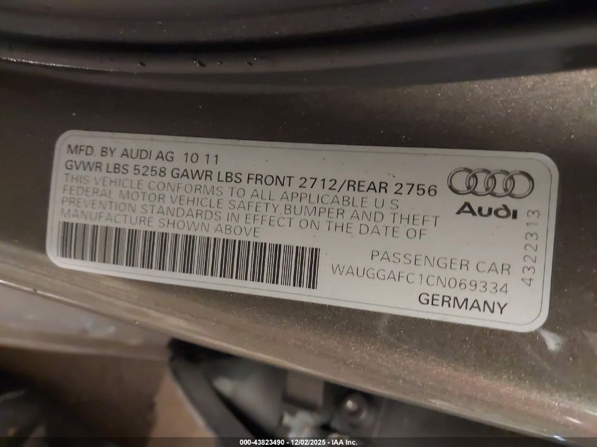 2012 AUDI A6 2012 року Бензин, 3.0, Полный привод, vin - WAUGGAFC1CN069334 из США