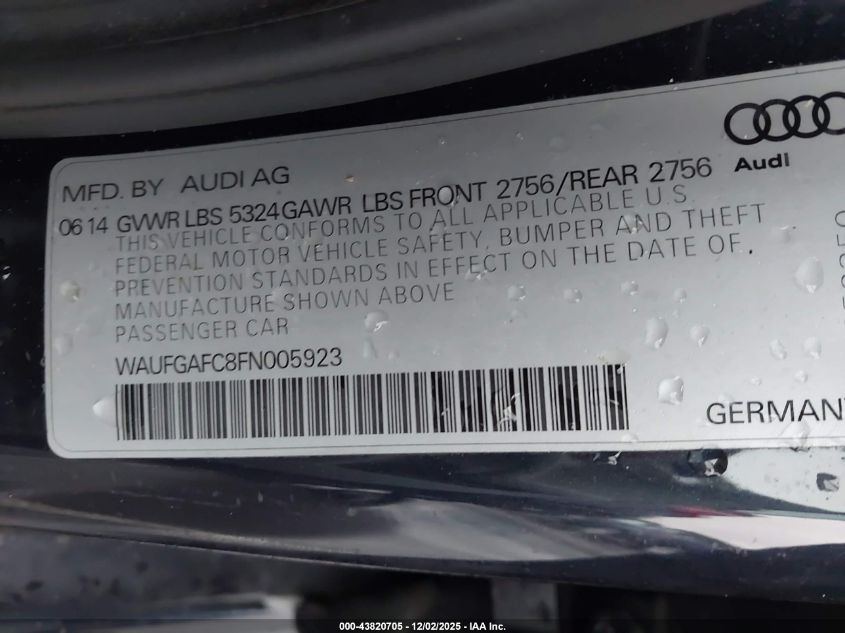 2015 AUDI A6 2015 року Бензин, 3.0, Полный привод, vin - WAUFGAFC8FN005923 из США