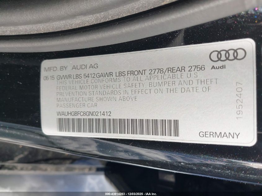 2016 AUDI A6 2016 року Бензин, 3.0, Полный привод, vin - WAUHGBFC8GN021412 из США