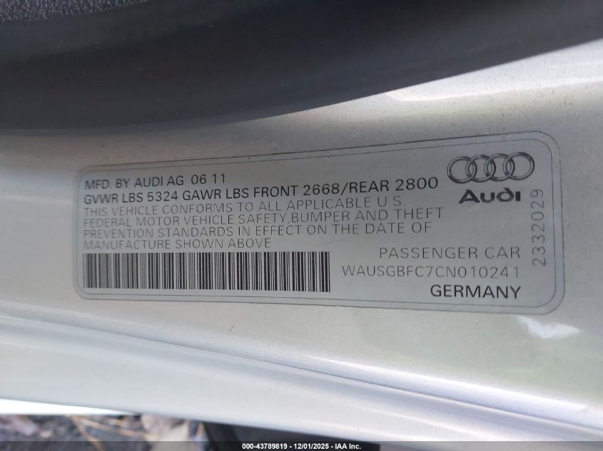 2012 AUDI A7 2012 року Бензин, 3.0, Полный привод, vin - WAUSGBFC7CN010241 из США