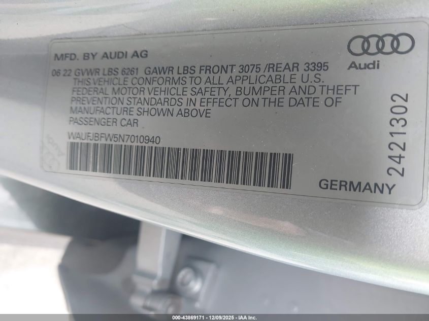 2022 AUDI E-TRON 2022 року Электрический, 0.0, Полный привод, vin - WAUFJBFW5N7010940 из США