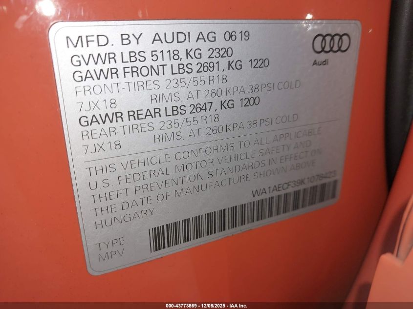 2019 AUDI Q3 2019 року Бензин, 2.0, Полный привод, vin - WA1AECF39K1078423 из США