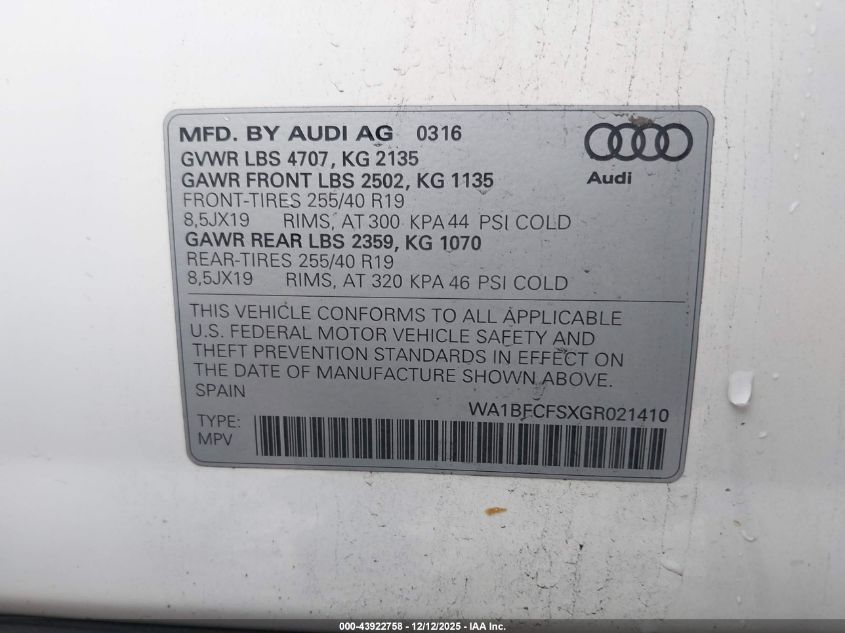 2016 AUDI Q3 2016 року Бензин, 2.0, Передний привод, vin - WA1BFCFSXGR021410 из США