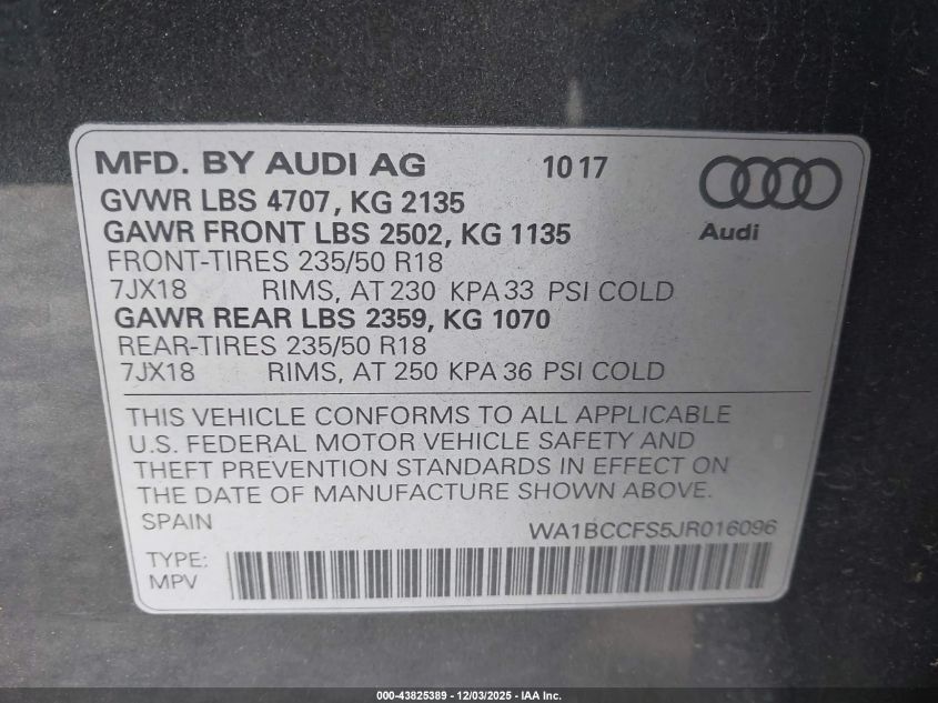 2018 AUDI Q3 2018 року Бензин, 2.0, Передний привод, vin - WA1BCCFS5JR016096 из США