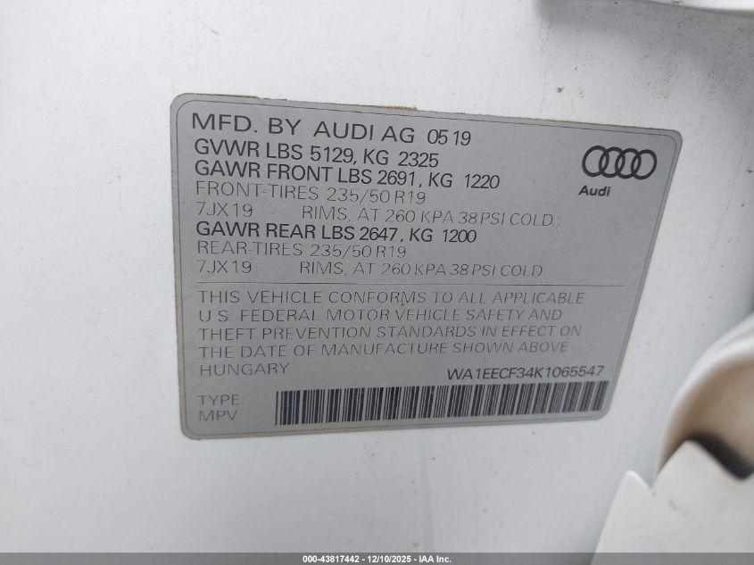2019 AUDI Q3 2019 року Бензин, 2.0, Полный привод, vin - WA1EECF34K1065547 из США