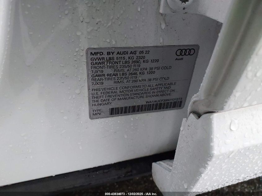 2022 AUDI Q3 2022 року Бензин, 2.0, Полный привод, vin - WA1AUCF39N1131273 из США