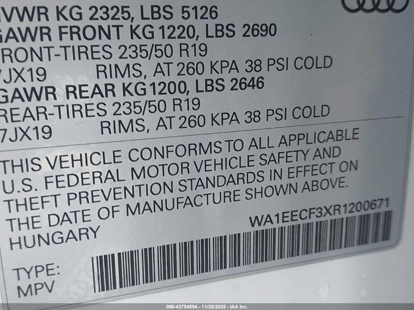 2024 AUDI Q3 2024 року Бензин, 2.0, Полный привод, vin - WA1EECF3XR1200671 из США