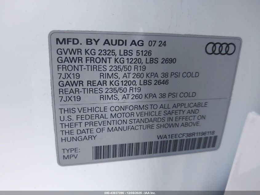 2024 AUDI Q3 2024 року Бензин, 2.0, Полный привод, vin - WA1EECF38R1196118 из США