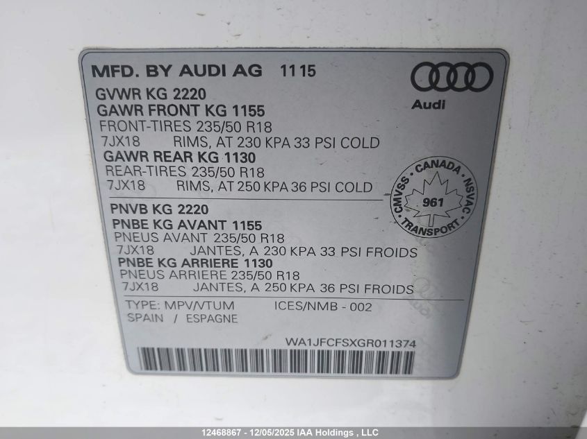 2016 AUDI Q3 2016 року Бензин, , Полный привод, vin - WA1JFCFSXGR011374 из США